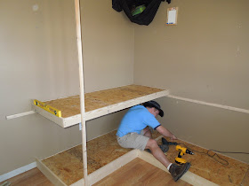 • They don't have any other furniture other than the beds and a small bookshelf and little end table. This gave us more freedom to build beds in the room. Their closet is full of 15" cubbies instead of using dressers!